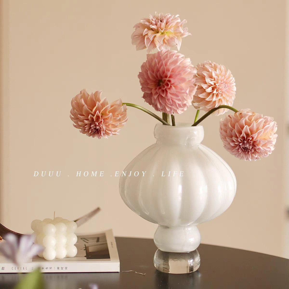 花瓶置物リビング生け花高级感ガラス白いガラス軽い豪华な北欧风食卓水育花バラ