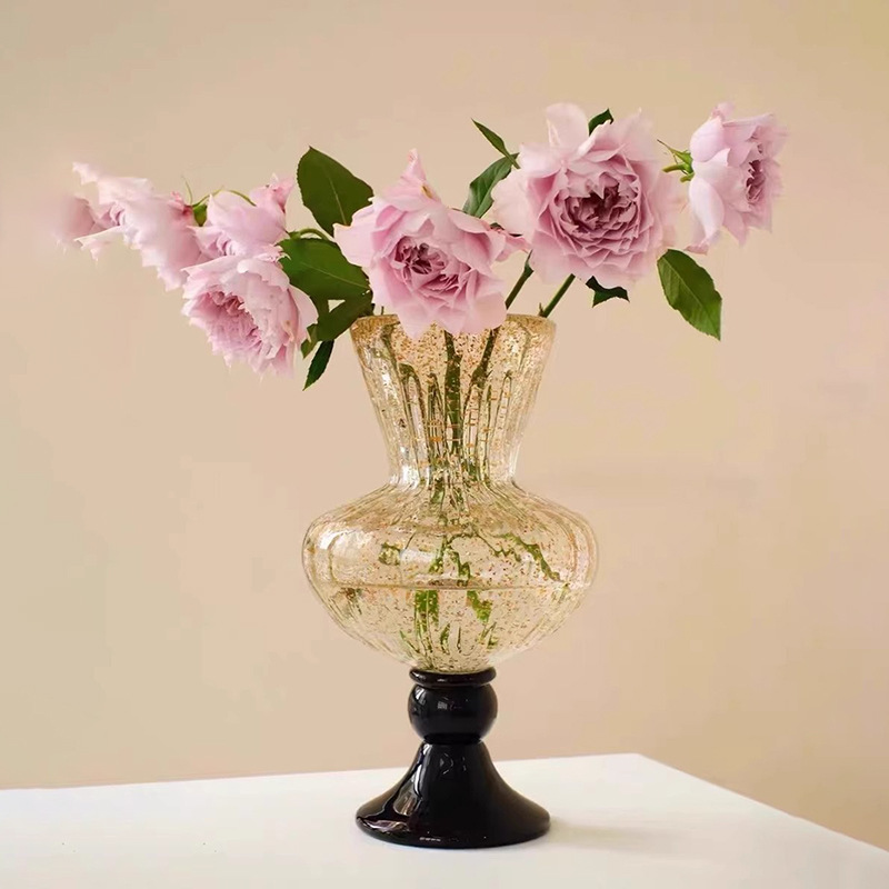 軽い豪華な散金ガラスの花瓶の高い足のレトロな中古のフランス式の高級感の風灯の花瓶の花器の生け花の置物