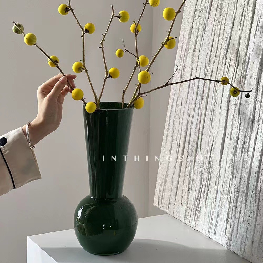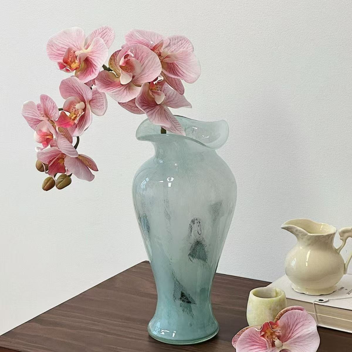 新中国式中古ガラス花瓶高颜値客レストラン花瓶生け花高级感装饰置物インスタ风