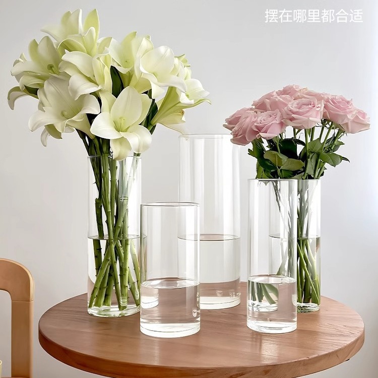 ストレートガラス花瓶高級感生け花富貴竹透明装飾花瓶水培ins風置物卸売り