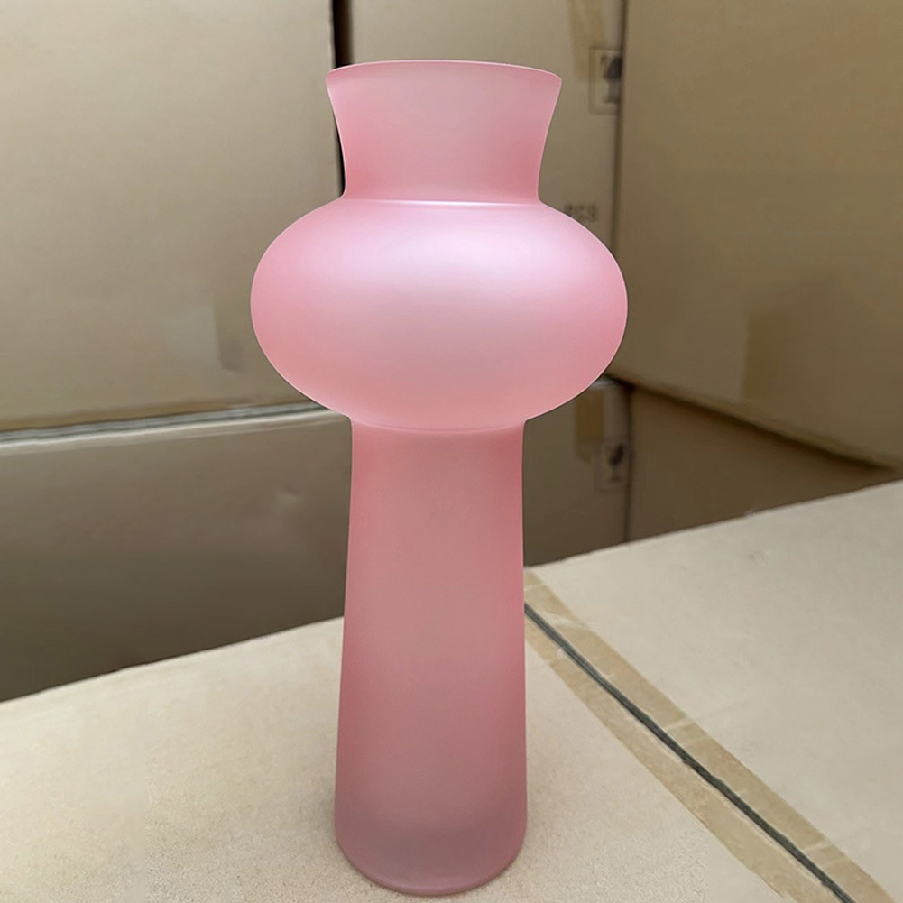 北欧インスタイルのピンクのパーソナライズされたガラス花瓶、見栄えの良いホームリビングルーム花瓶、ハイエンドの装飾と見栄えの良い