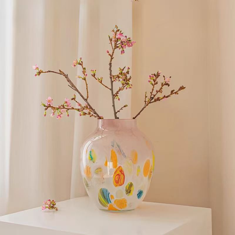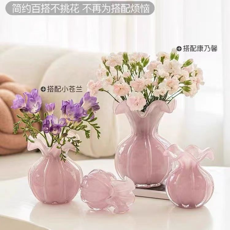 北欧ガラス花瓶高級感置物ピンクリビング生け花ガラス水養水培花花創意見本板間