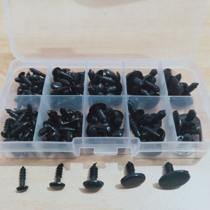 10箱入りのプラスチックぬいぐるみの目の鼻の部品の丸いねじの目の全黒い目のdiyの目