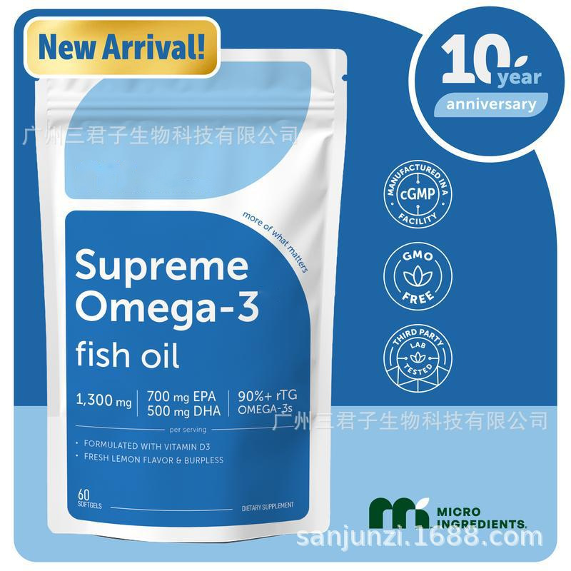越境新商品 魚油ソフトカプセルSupremeFish Oil オメガ3 ビタミンD3 工場カスタム
