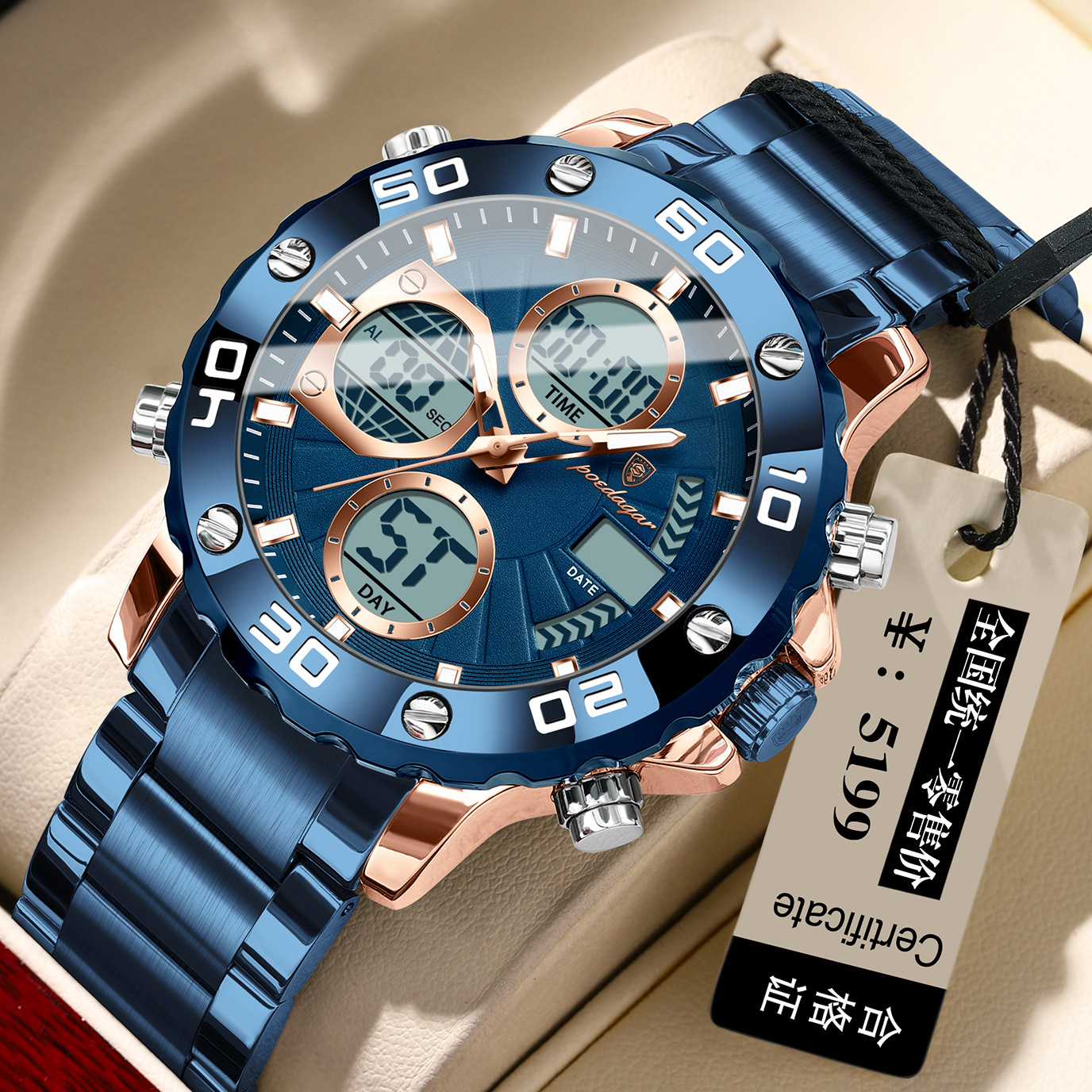 POEDAGAR新型電子時計多機能双顕夜光男性腕時計石英時計生放送外国貿易腕時計