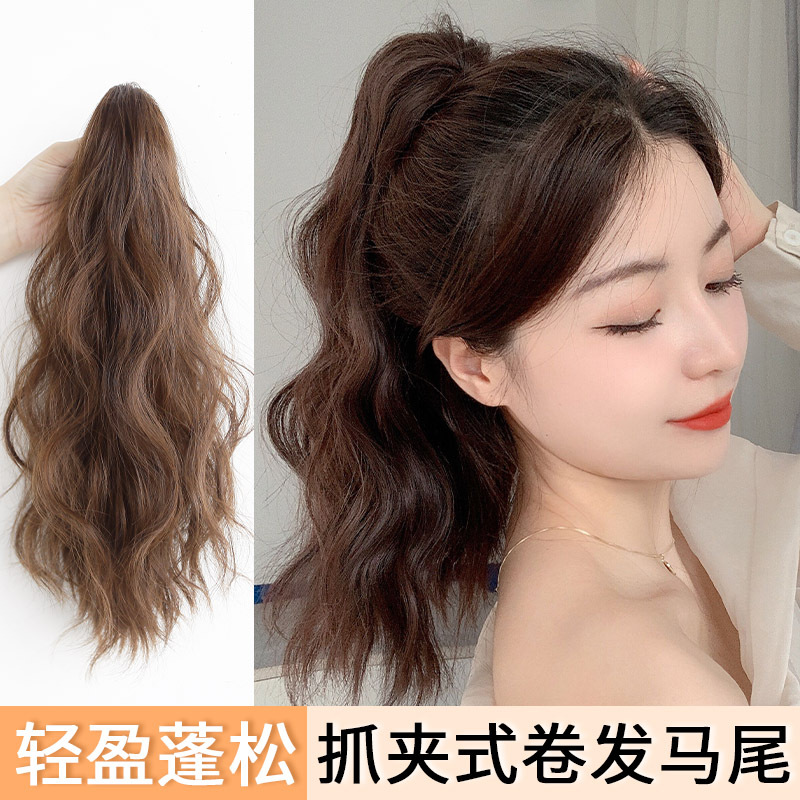 雲のパーマの短い馬尾のかつらの女性の短い金のネットの赤い高い馬尾のナシの花巻の偽の馬尾の夏はカールのお下げを挟みます。