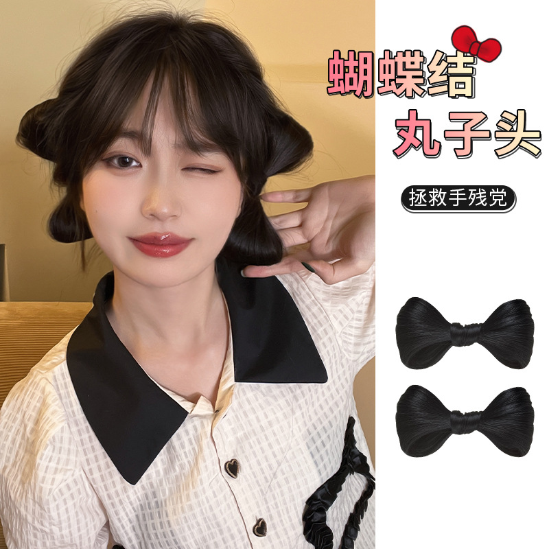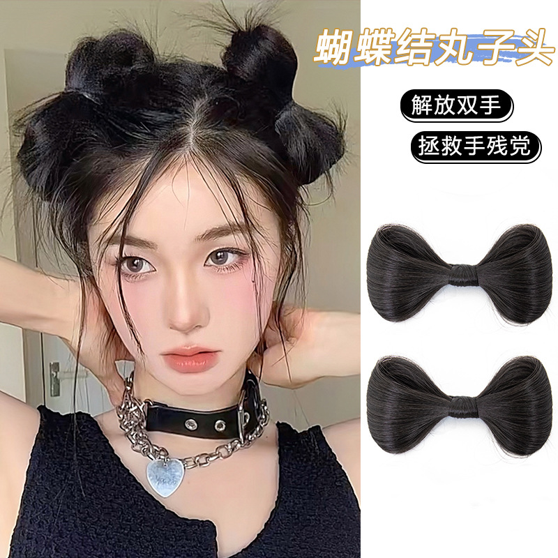蝶結びの団子の頭のかつらのヘアピンの髪飾りの女性のかわいいギャルの後頭部の怠け者の髪のふわふわしている神器の頭飾り