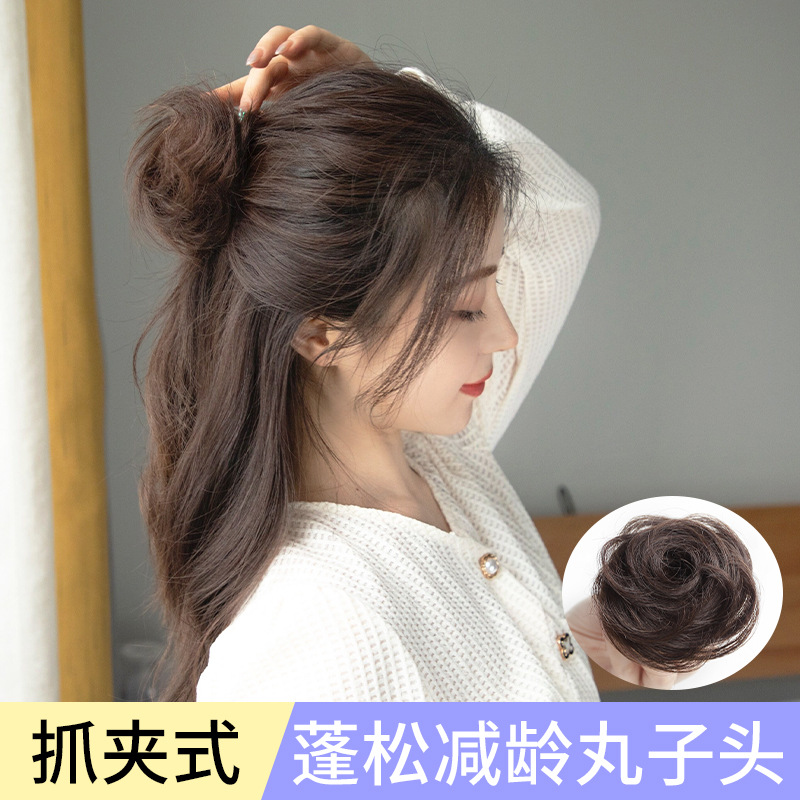 かつらの髪の輪がかわいいふわふわした蝶結びの団子の頭の女性の髪の神器の漢服の髪の古風の団子の頭のかつら