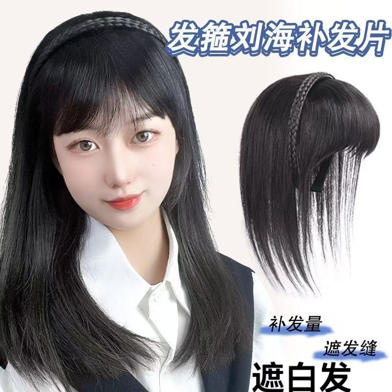 擬似髪前髪かつら女性自然額空気巻きかつら前髪無痕ウール巻き前髪かつら