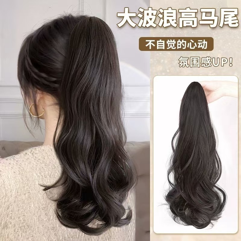 ポニーテールのかつらの女性の長いカールの大きい波は高いポニーテールのシミュレーションの髪のふわふわしています。