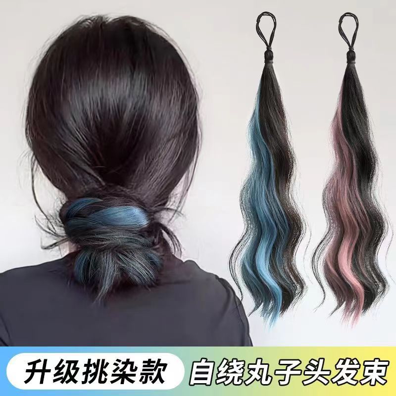 女性用ミートボールヘアウィッグ、甘くてスポーティーなハイライトチキンフェザーヘアクリップ、ふわふわローヘアヘアバンドル、カラーウィッグヘアバンド