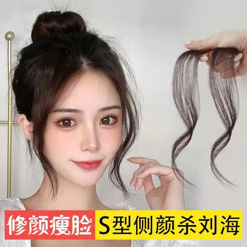 龍須八字前髪かつら女性自然シミュレーションかつら前髪ネット赤修顔両側中分前髪かつら