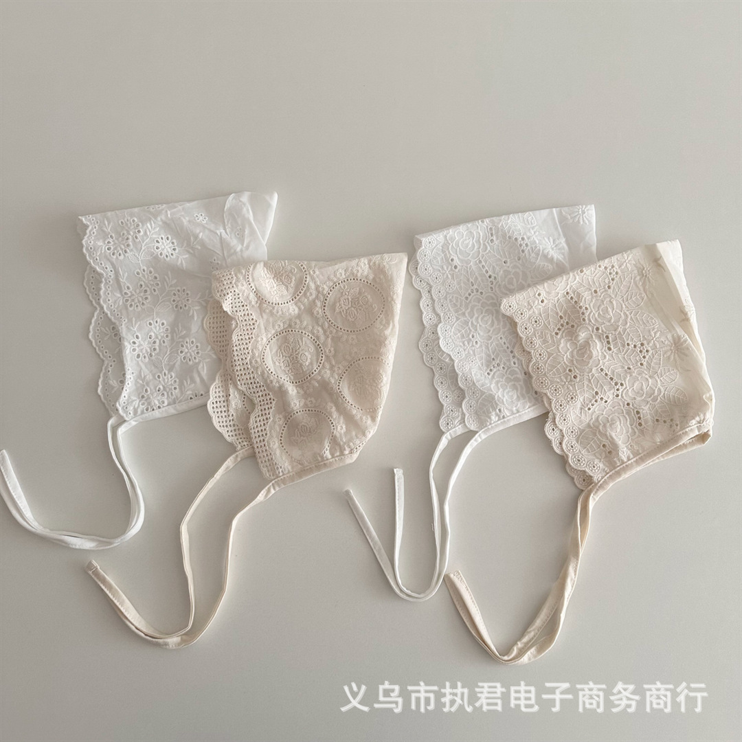 韓国INSかわいい洋気包頭帽子赤ちゃんの凹形レースウサギの耳のひも