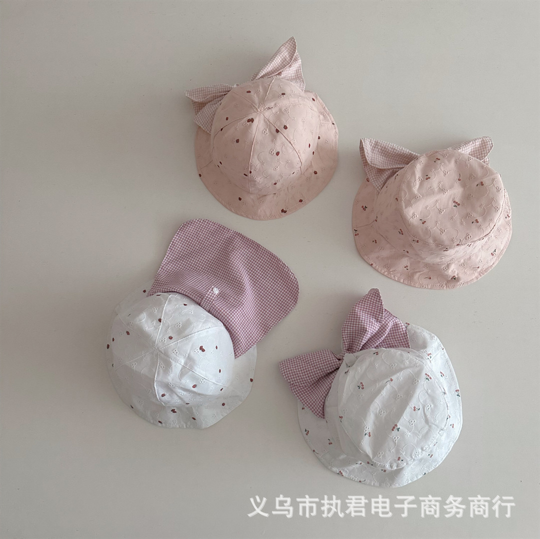 赤ちゃんの帽子春と秋の薄いモデルのかわいい日よけ盆帽歳の赤ちゃんの超萌え熊耳夏日焼け止め漁師帽