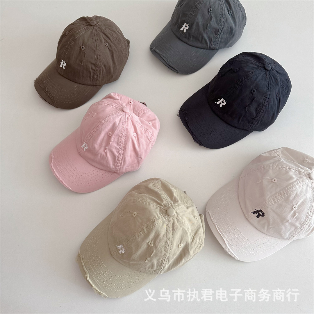 子供用野球帽2025年新作春純色刺繍アルファベット日よけのつばに遊びに行きます。