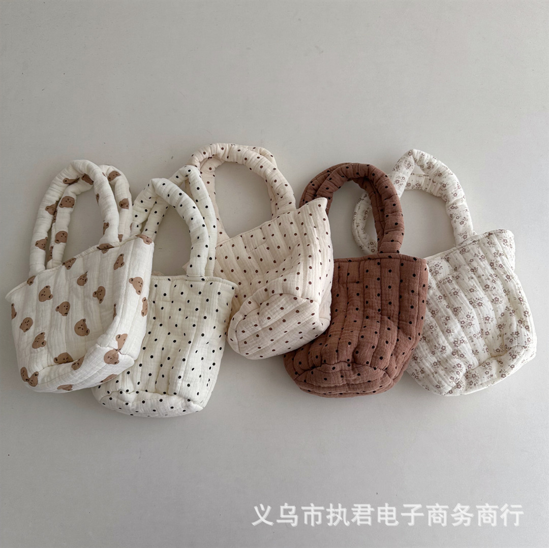 子供のハンドバッグの韓国版の小さい大衆のしわの綿の女の子のかわいい波の点系の凹形の装飾の洋風の組み合わせのバッグの潮