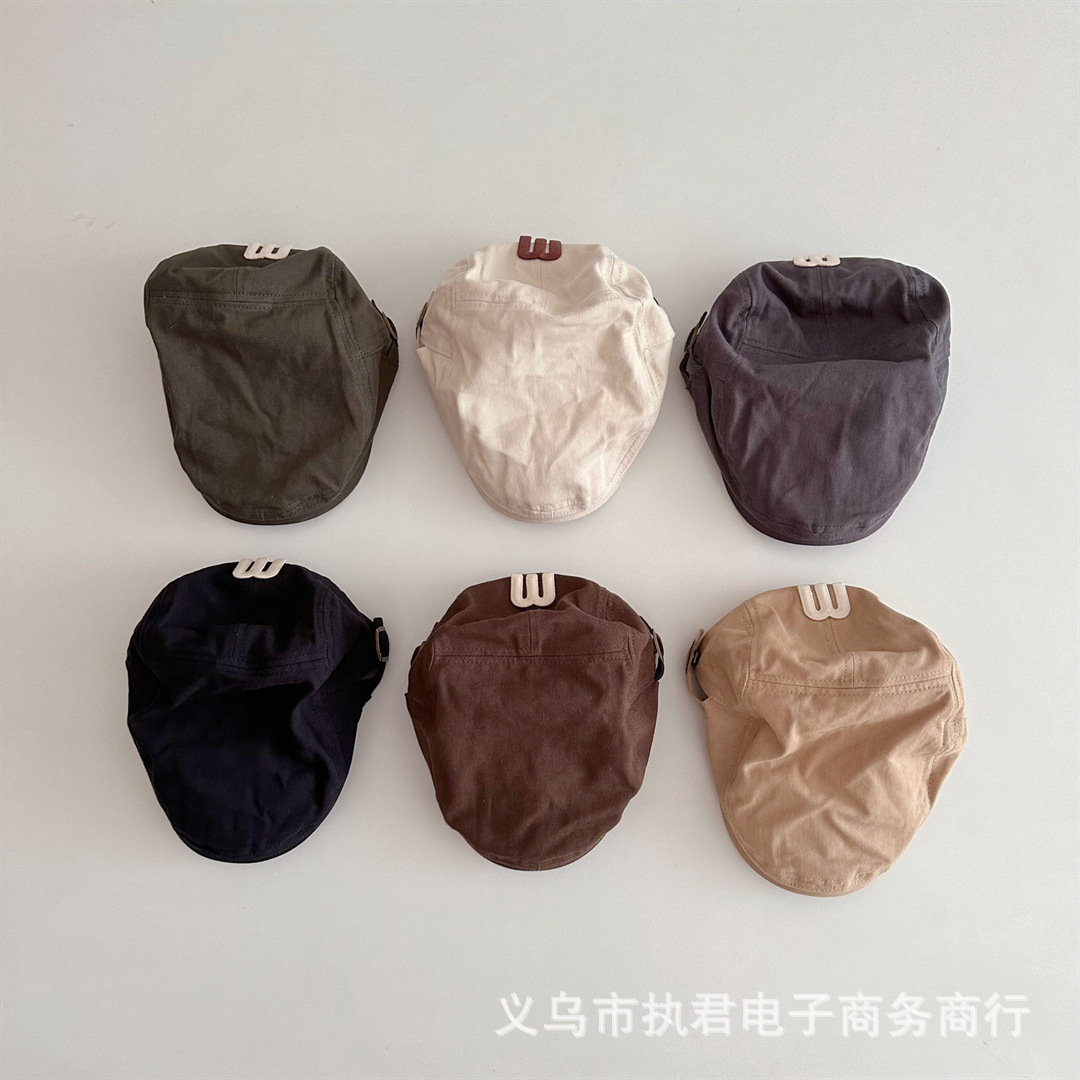 韩系レトロ子供用帽子春夏凹形子供用帽子男児洋気ベレー帽アルファベットm前进帽子ブーム