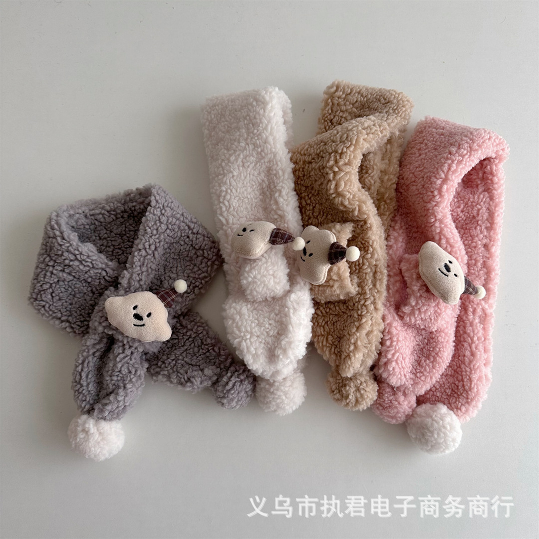 韓国版の子供のマフラーの男女の洋気は交差する毛玉の小さい標準の冬の屋外の凹形の保温のマフラーを着ます。