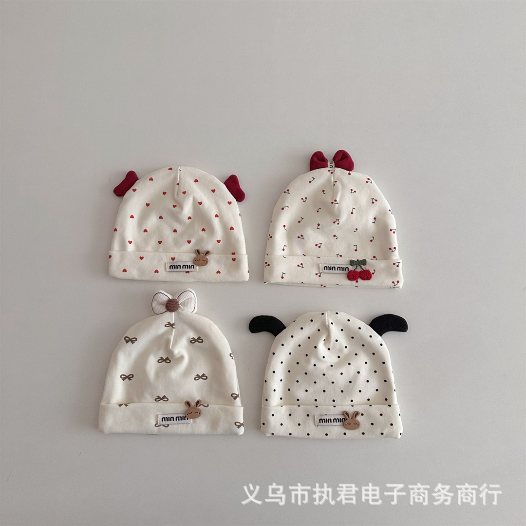 春と秋の赤ちゃんの保護の扉の胎帽のかわいい蝶結びのさくらんぼの愛の図案の0-3ヶ月の新生児の頭の帽子をかぶせます。