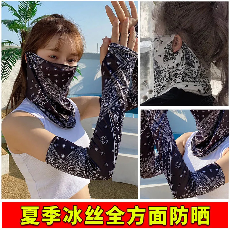 夏の新型日焼け止めマスク男女ヒップホップ腰果花潮騎乗袖カバー紫外線防止耳氷糸ベール