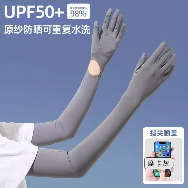 夏の薄い氷糸日焼け止め氷袖カバー紫外線防止屋外一体式アーム滑り止め氷感日焼け止め手袋