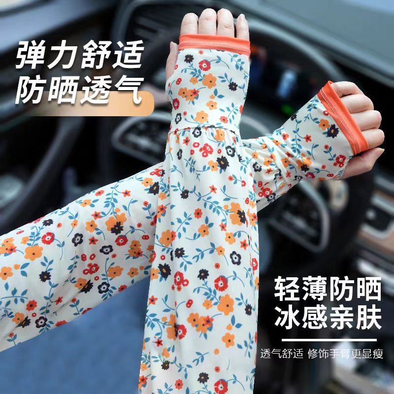日焼け止め袖カバー女性の夏の花の氷の袖カバー男性の屋外運転通気性の長いゆったりした腕の長袖手袋