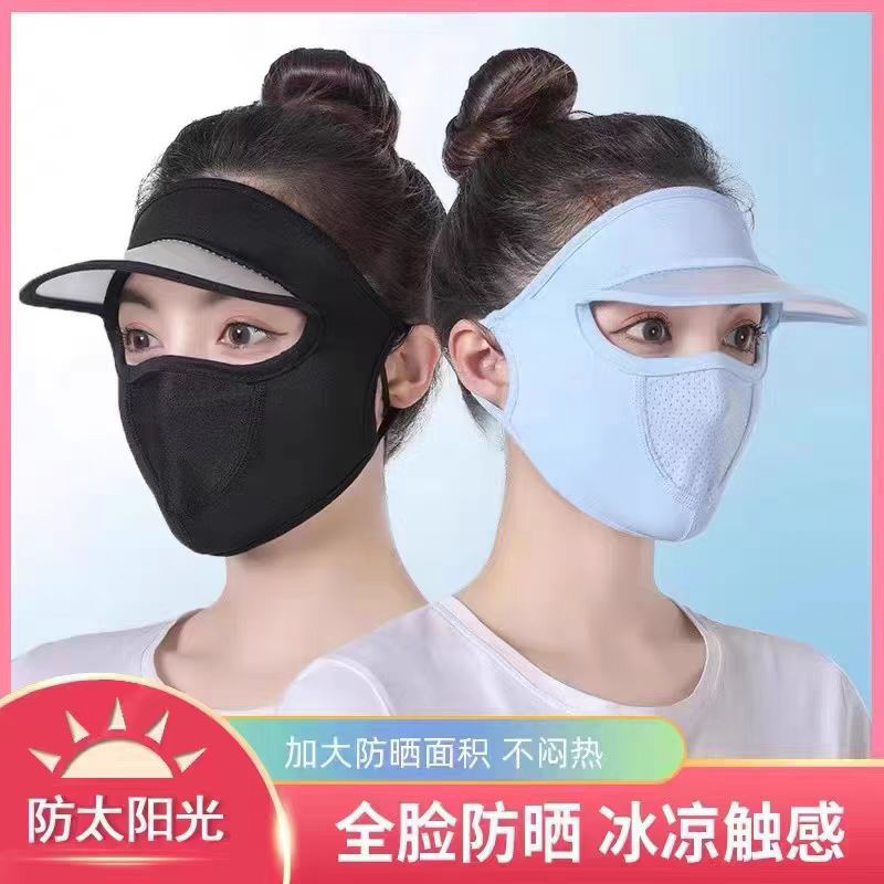 日焼け止めマスク運転氷糸マスク通気日よけ帽子付き夏の自転車マスク紫外線防止顔ジニ