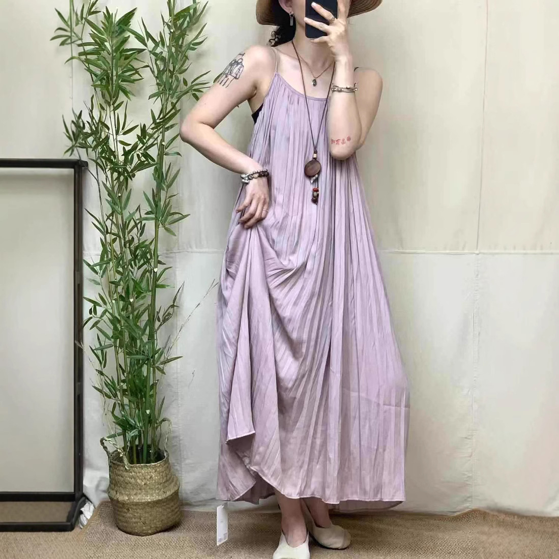 ml6115 ココナッツアイランドシルクプリーツ多用途サスペンダードレス 2025 夏の新テクスチャビーチドレス