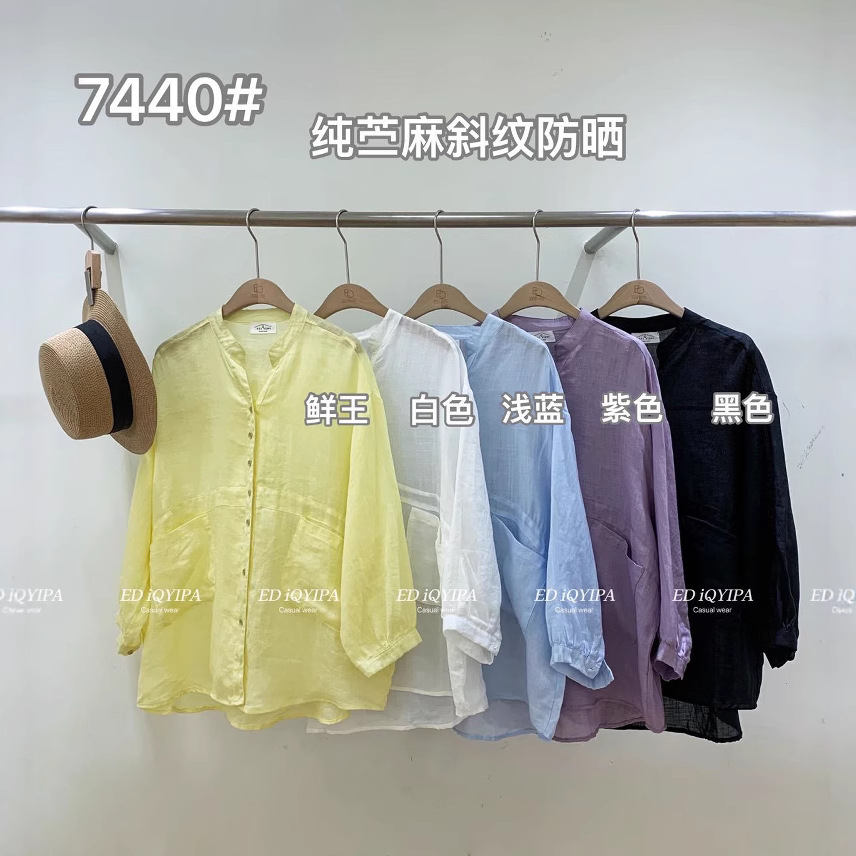 ed7440 純粋なラミーツイル薄い長袖日焼け止めシャツ夏の新しいクールで通気性のあるルーズカジュアルカーディガン女性用