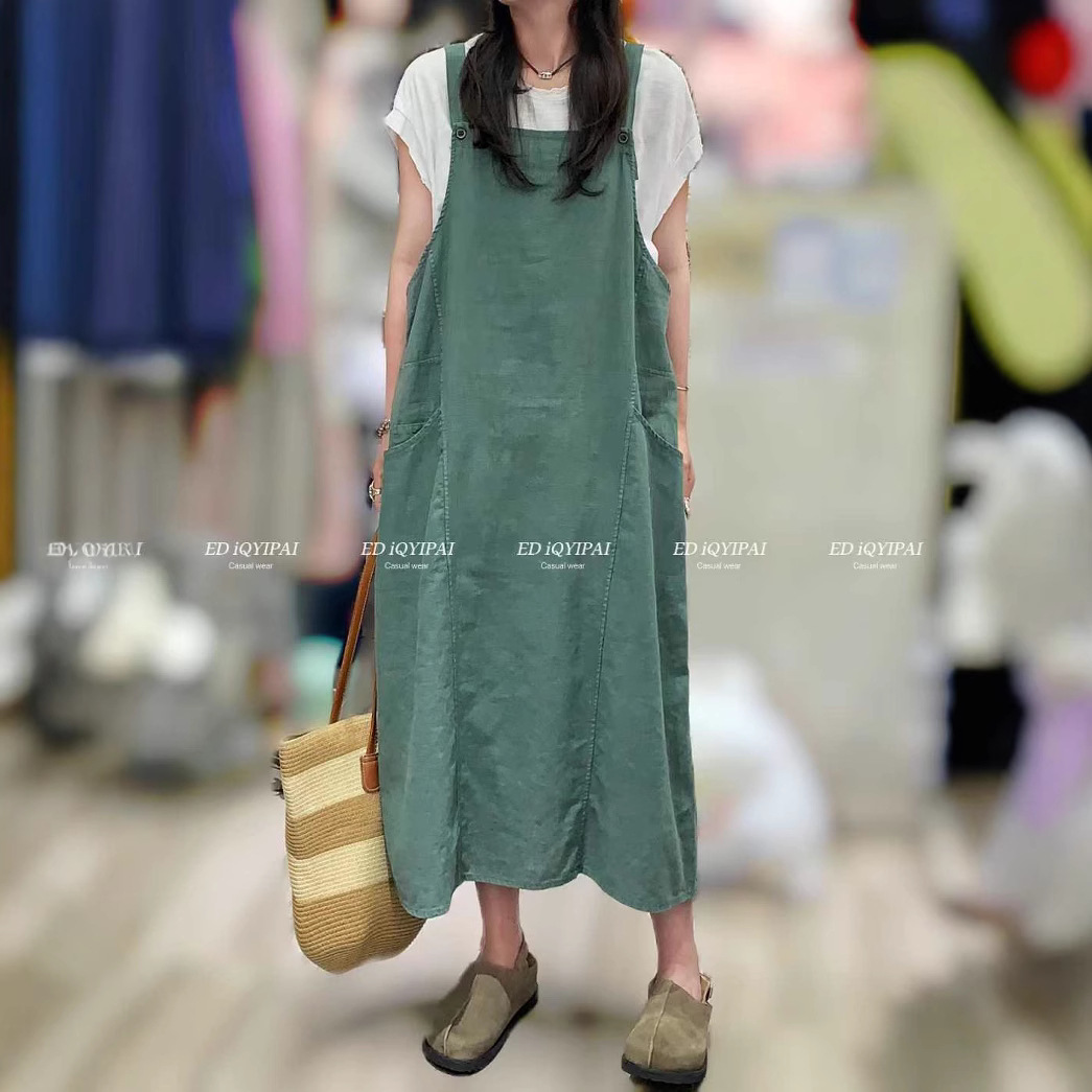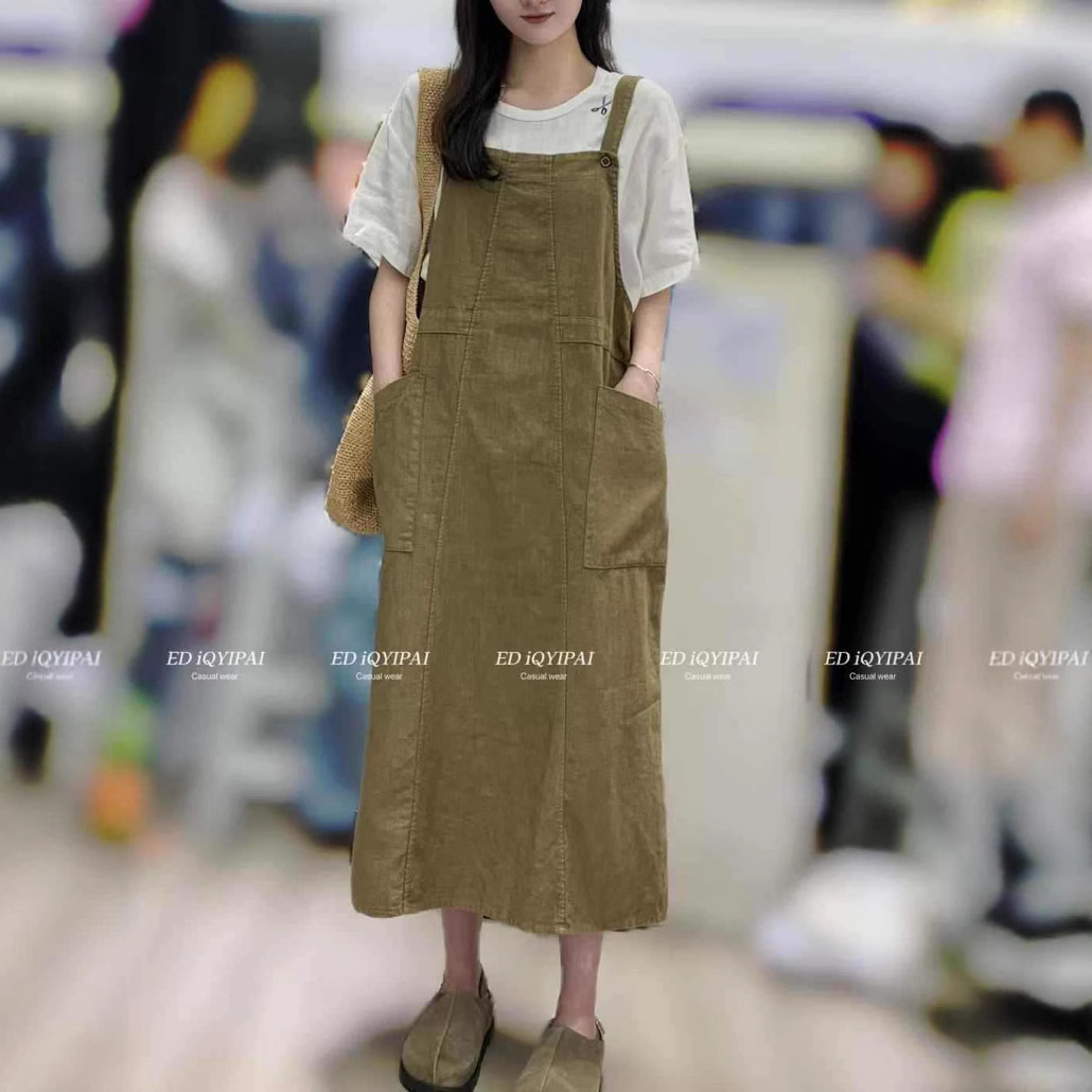 ed9536 ヘンプコットンサンドウォッシュシンプルでエレガントなサスペンダーロングスカート 2025 夏の新韓国デザインサスペンダースカート女性用