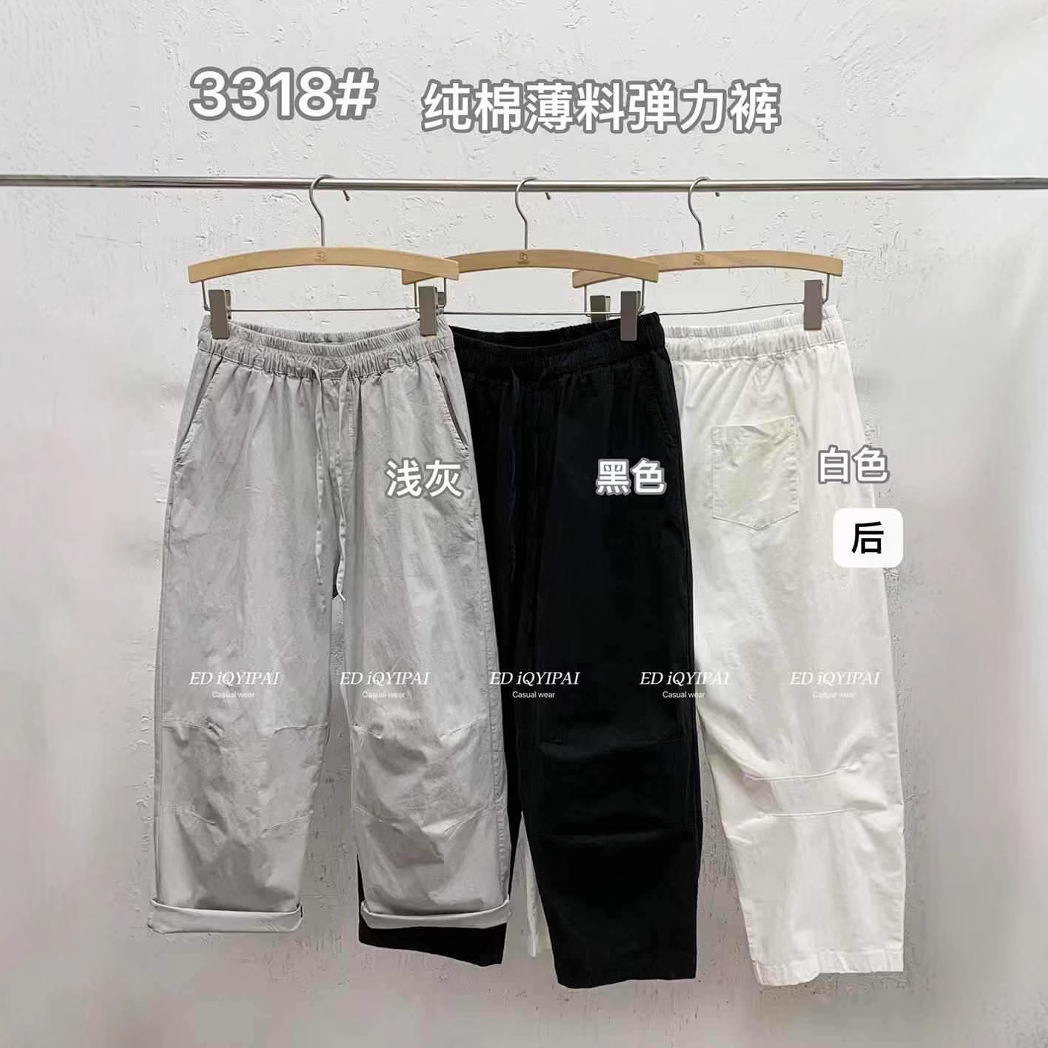 ed3318 純綿薄手素材ストレッチウエストストレートパンツ 2025 夏新作無地スリムカジュアル 9 点パンツ