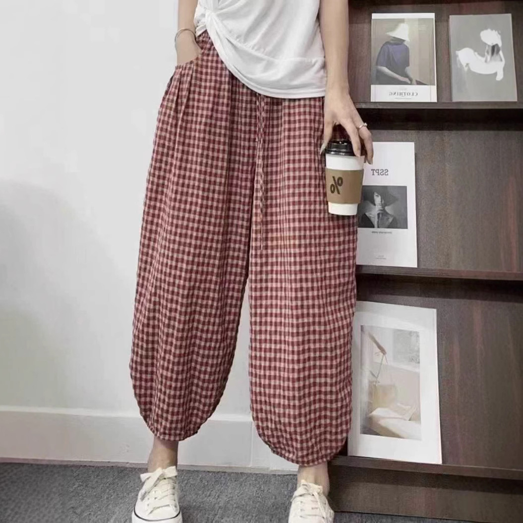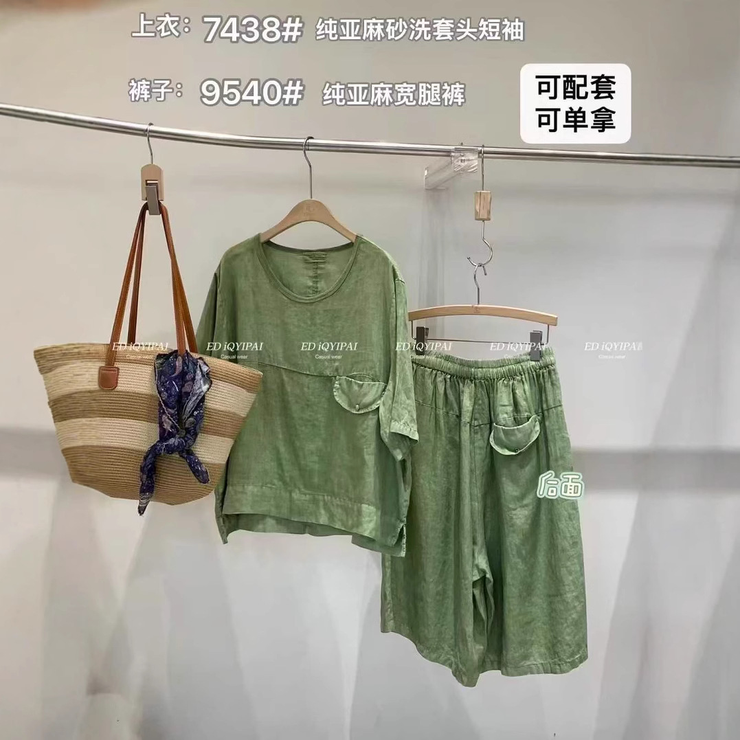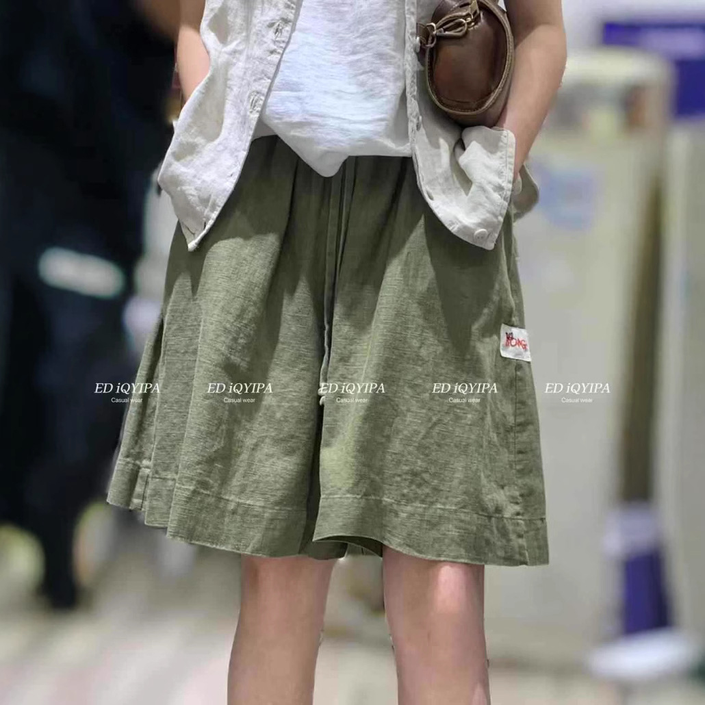 Ed9540純亜麻の砂洗いは腰の広い足のズボンを緩めます。2025夏の新商品は肉を隠して痩せています。