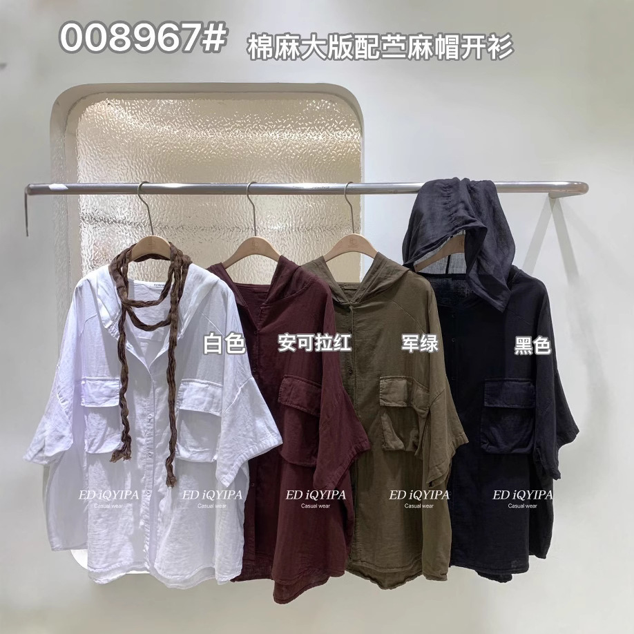 Ed008967綿麻大版ラミー麻帽カーディガン女性2025夏の新型シンプルな文芸上着