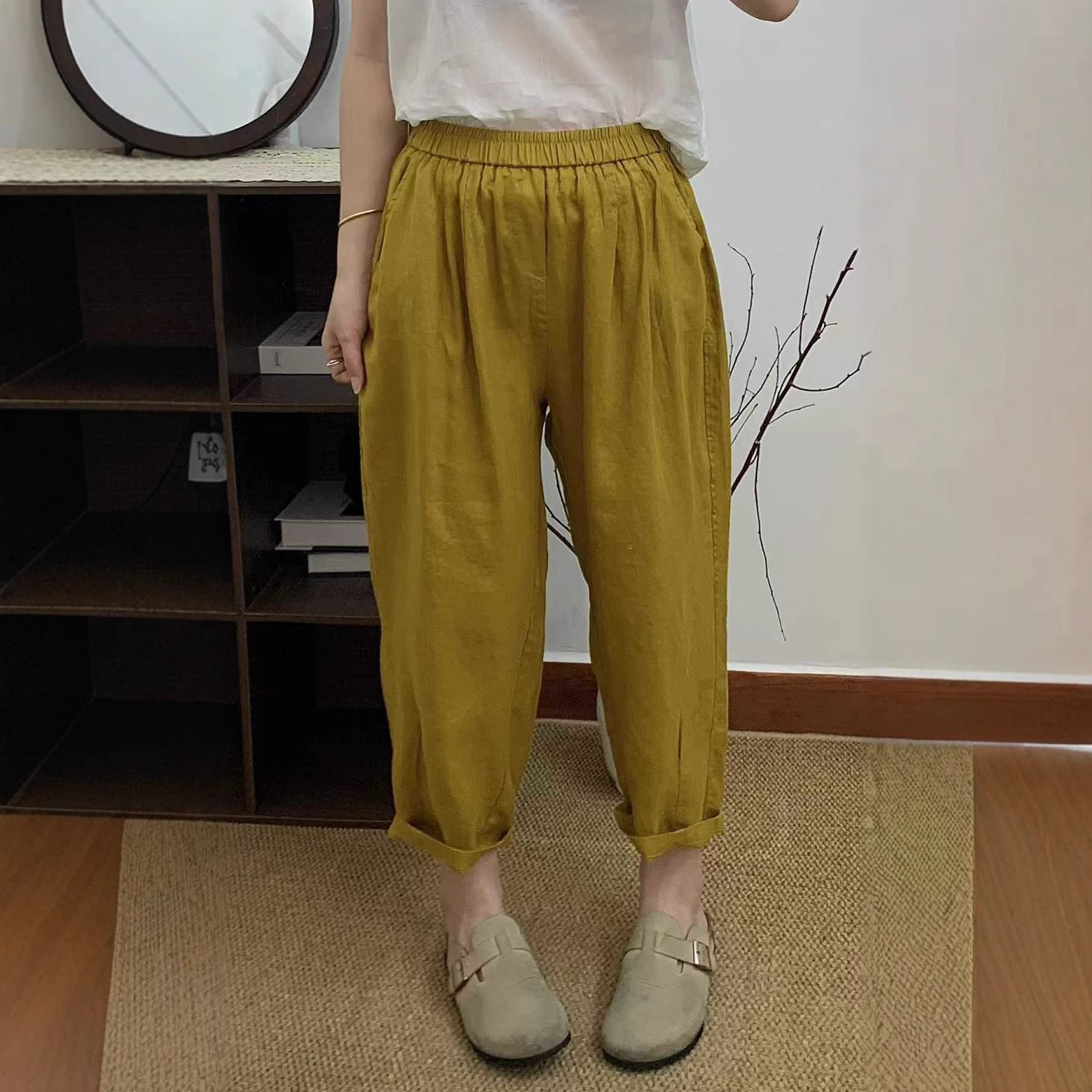 bjl7518 リネン弾性ウエスト多用途キャロットパンツ夏の新しいルーズカジュアル通気性ハーレムパンツ女性のための