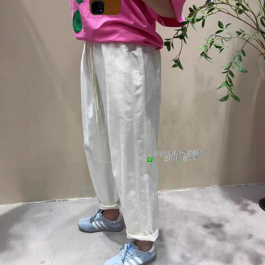 bm20108 ウォッシュドコットン伸縮性ウエスト多用途気質カバー肉痩身ハーレムパンツ夏の新無地カジュアルパンツ