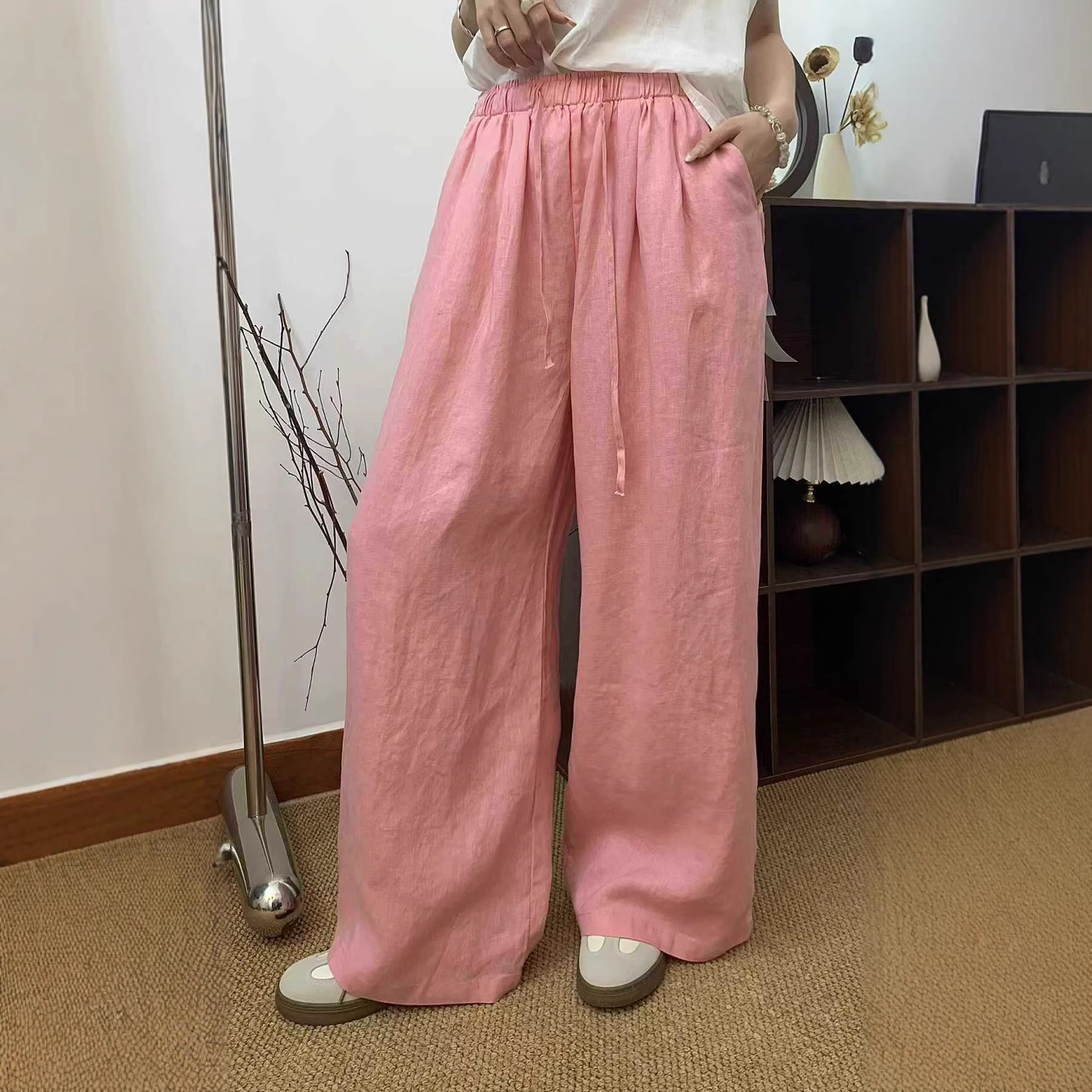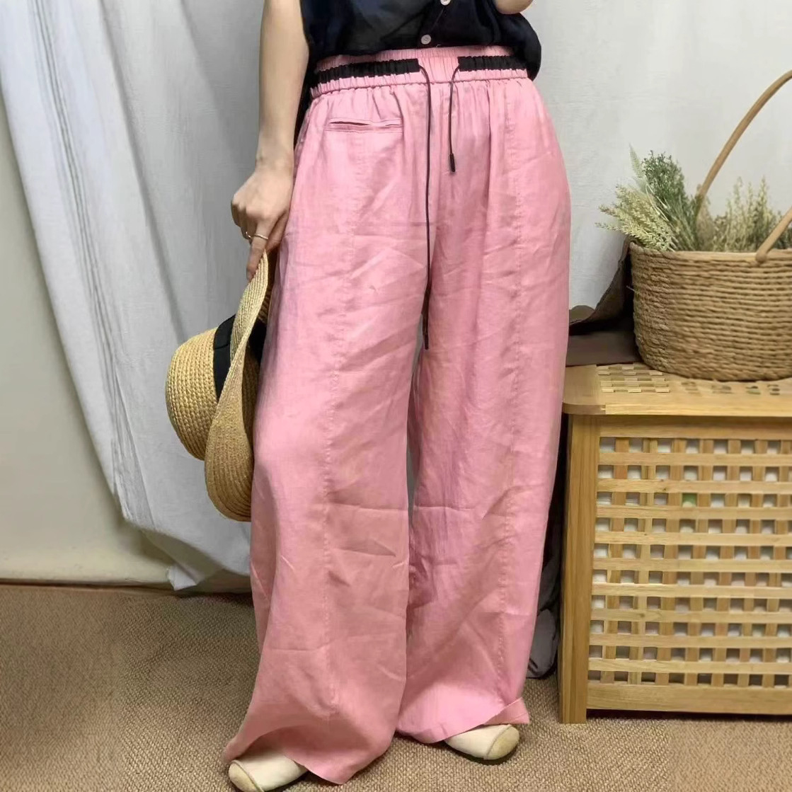 Bjl7512文芸気質が腰を緩めている亜麻が痩せているカジュアルパンツ2025年夏の新型純色ストレートパンツ