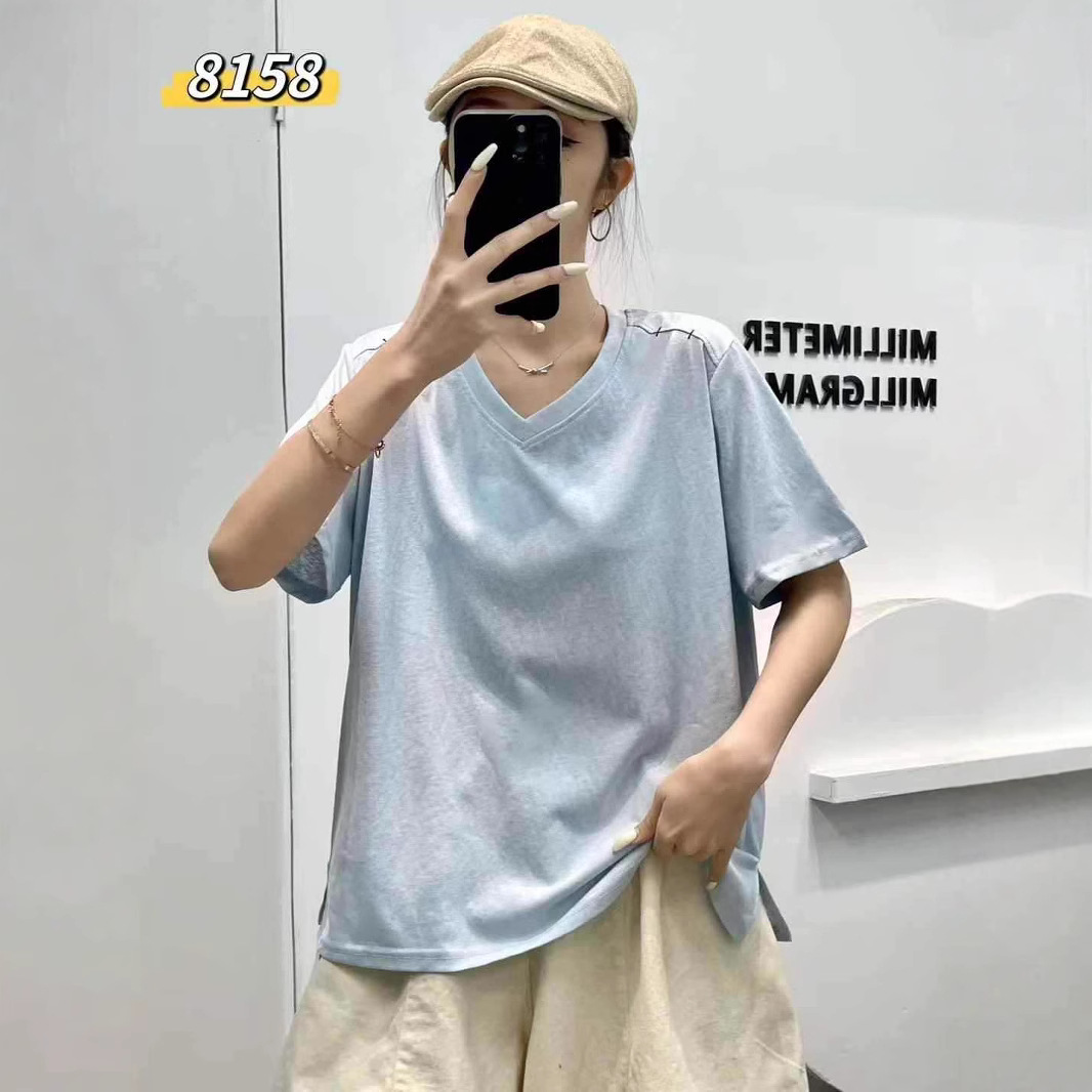 yl8158 シンプル韓国風ルーズスリムVネック無地万能半袖Tシャツ2025夏新作プルオーバートップス