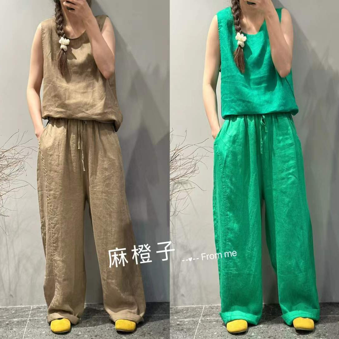 Cz9659 230871亜麻の純色はシンプルで、着痩せベストのカジュアルパンツ2025の新型二点セットです。