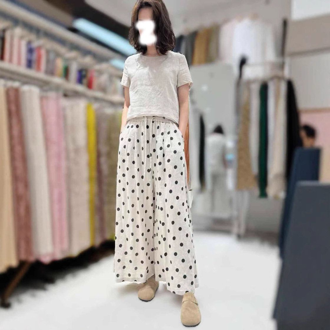 Jtb2511B亜麻波点カジュアル長ズボン文芸ゆるい大サイズ亜麻広脚ズボン夏の新型大振り子ズボン