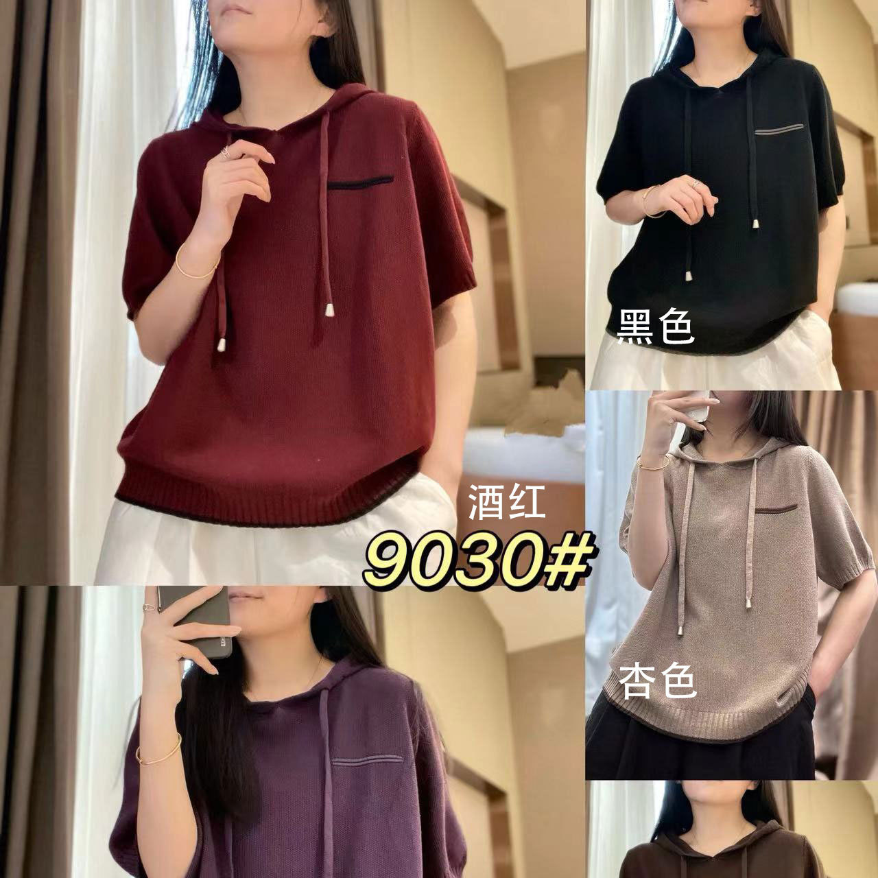Dm9030純色シンプル気質フード付きニットtシャツ2025新商品ファッションインナーニット上着