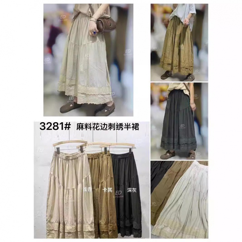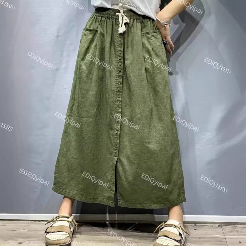 Ed3273麻料森系ハーフスカート前後のデザインモデルは、痩せた半身のスカート2024の新しいカジュアルな雰囲気のスカートに合わせています