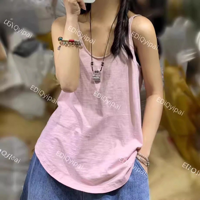 Ed6242純綿のネジの縁のベスト2024夏の新型の純色のカジュアルな中にベストをつけて上着の女性を打ちます。