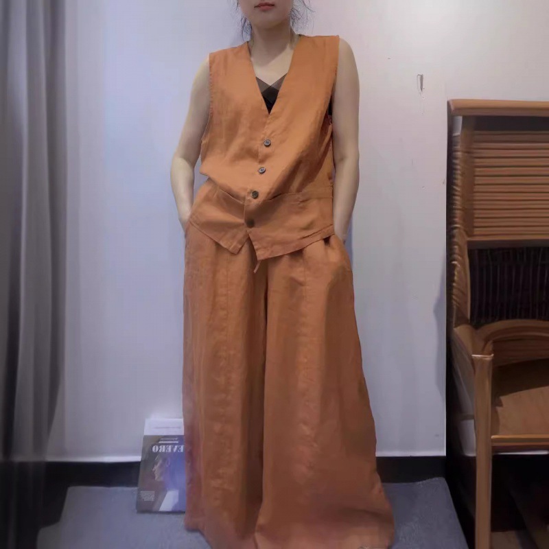 Mx8512亜麻の純色はシンプルで、ノースリーブのベスト女性2024新型文芸カジュアル気質カーディガンのベストクリップです。