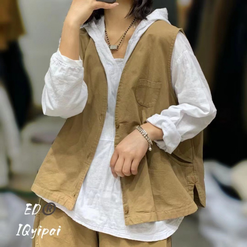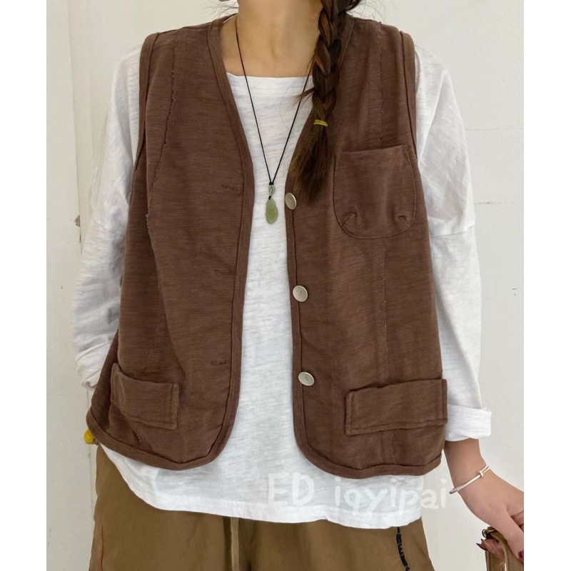 Ed3631韓国洗水綿馬甲新工F風馬甲女復古文芸シンプルでゆるい肩のベストクリップ