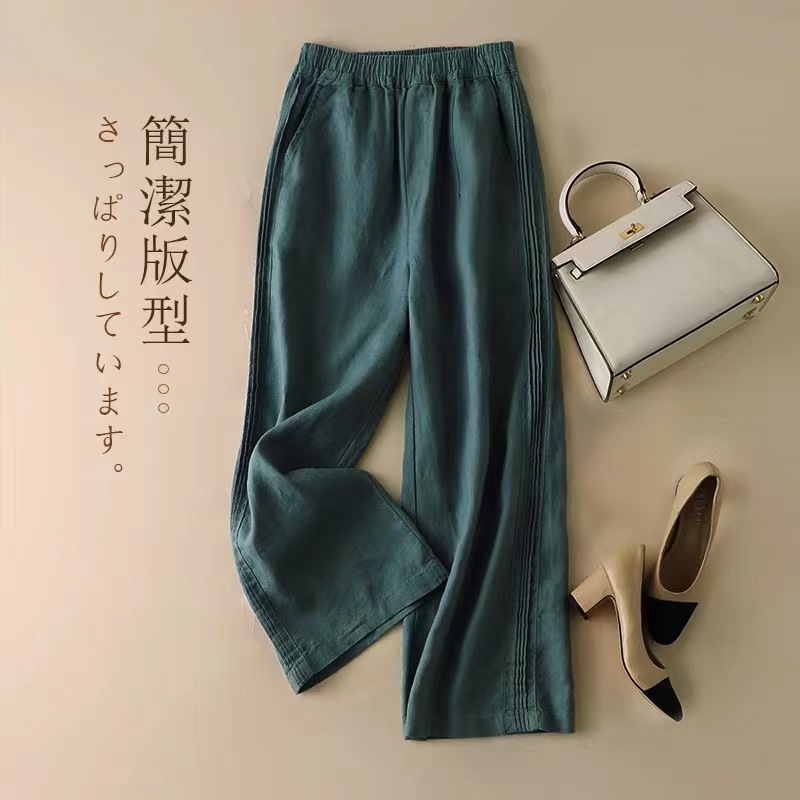 Mx8321純色亜麻が腰を緩めているストレートパンツ2024夏の新商品カジュアルワイドパンツ文芸九分ズボン女