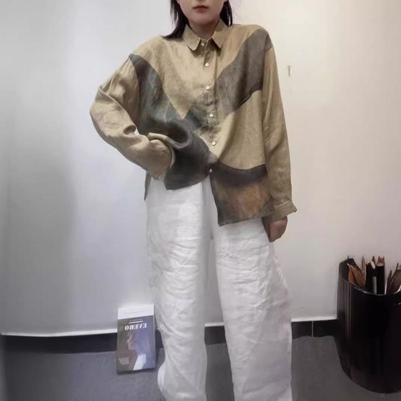 Mx8519文芸プリント模様亜麻長袖シャツ亜麻卸売りファッション百合気質カーディガン上着潮