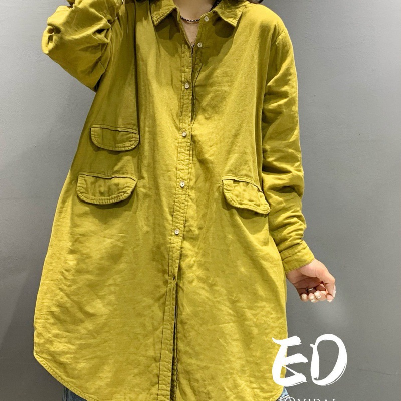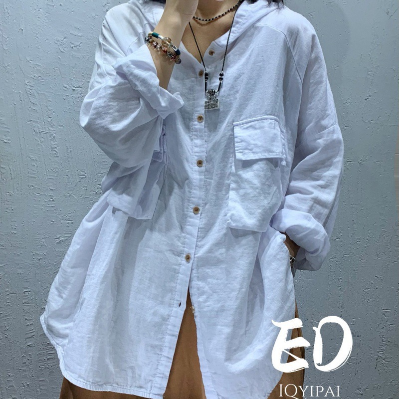 Ed7126洗水綿麻大版ゆるい長袖シャツ2024新型シンプルカジュアル中長シャツ