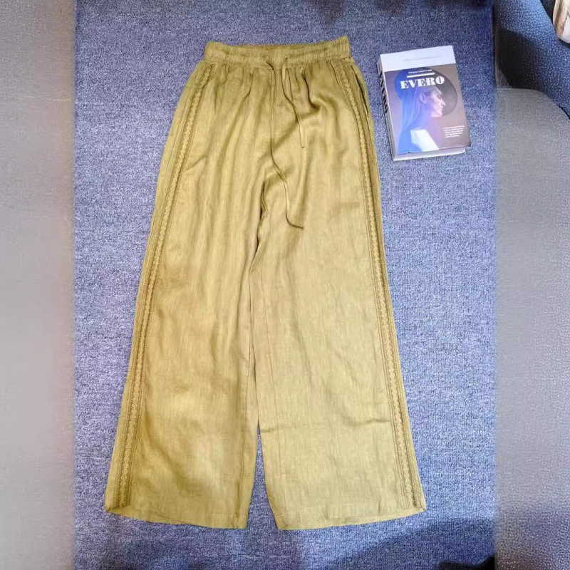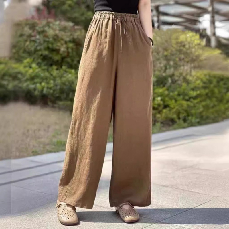 Mx8605文芸亜麻シンプルな百合は肉を遮って痩せているカジュアルパンツ2024の新しい純色のストレートズボンの婦人服を見せます。