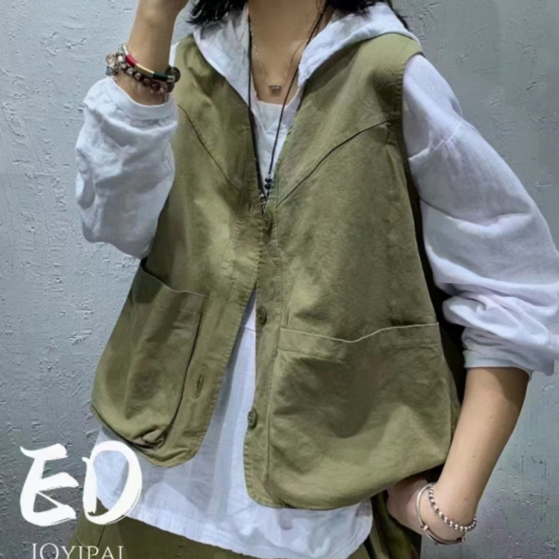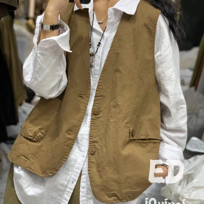 Ed3601水洗い綿工装薄手馬甲2024新商品のゆったりとしたやせた気質を見せているベストジャケットの女性