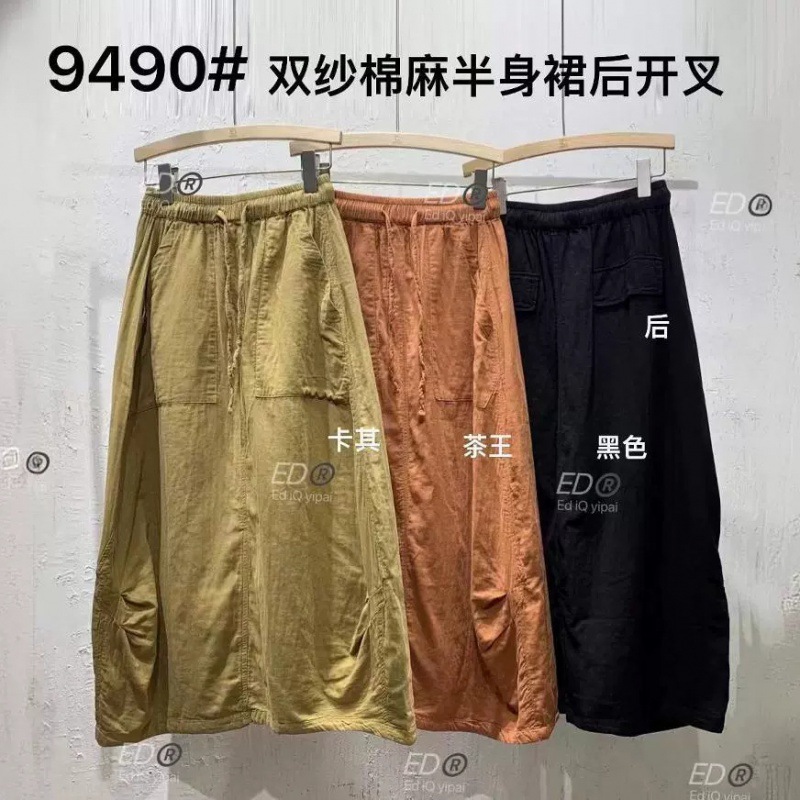 Mx8611純色亜麻文芸カジュアル百合は痩せているスカート2024夏の新型シンプルなスカート女装